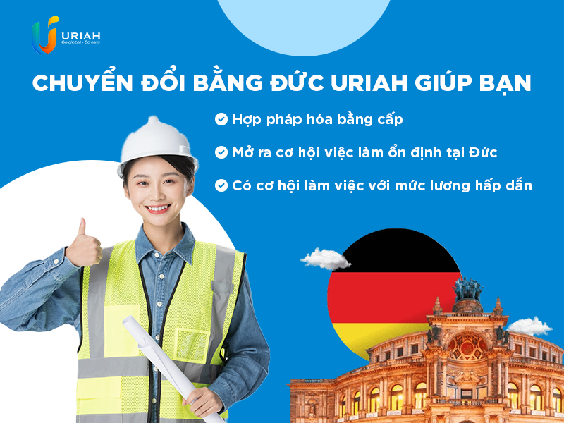 Chuyển đổi bằng Đức Uriah không chỉ là một dịch vụ đơn thuần mà là sự đồng hành toàn diện. Chúng tôi sở hữu đội ngũ giàu kinh nghiệm, hiểu biết sâu về quy định pháp lý và thị trường lao động Đức, giúp quy trình chuyển đổi trở nên đơn giản và hiệu quả nhất. Uriah cam kết cung cấp dịch vụ toàn diện, tiết kiệm thời gian và chi phí, đồng thời hỗ trợ bạn trong việc định cư và tìm kiếm việc làm tại Đức.