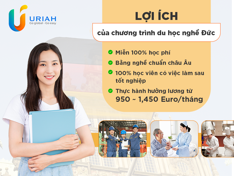 Nếu bạn muốn tham gia chương trình du học nghề Đức, hãy để Uriah tư vấn và hỗ trợ bạn trên con đường chinh phục ước mơ. Với nhiều năm kinh nghiệm và đội ngũ chuyên gia am hiểu thị trường Đức, Uriah tự hào là đơn vị hàng đầu tại Việt Nam trong lĩnh vực cung cấp dịch vụ du học nghề Đức trọn gói, mang đến giải pháp toàn diện và tối ưu cho học viên.